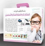 حقيبة لتنمية المهارات اللغوية للطفل عن طريق معرفة المقارنه بين عنصرين متحدين مع بعض في الصفة او من خلال المفاضلة و التي تكون بين عدد من العناصر متحدين في الصفة ايضاً كما تحتوي على بطاقات التسلسل و التي تعمل على زيادة معرفة الطفل التسلسل من الصعب للسهل او التسلسل من الكبير للصغير او التسلسل من خلال مراحل النمو